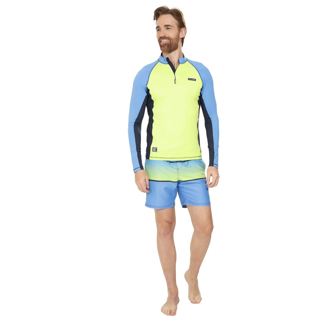 ¡Brilla bajo el sol con esta Playera Rashguard! Protección solar UPF50+ certificada que cuida tu piel mientras te diviertes en el agua. Secado rápido y color limón vibrante que te hace destacar. Detalles premium: etiqueta bordada con logo Fullsand en el pecho izquierdo, cierre marino en el pecho para ajuste perfecto, y costados de mangas en tela respirable para máxima ventilación. Los toques en contraste —cuello interno y costados del cuerpo— le dan un look moderno y dinámico. Tu compañero ideal para playa, piscina y aventuras acuáticas.