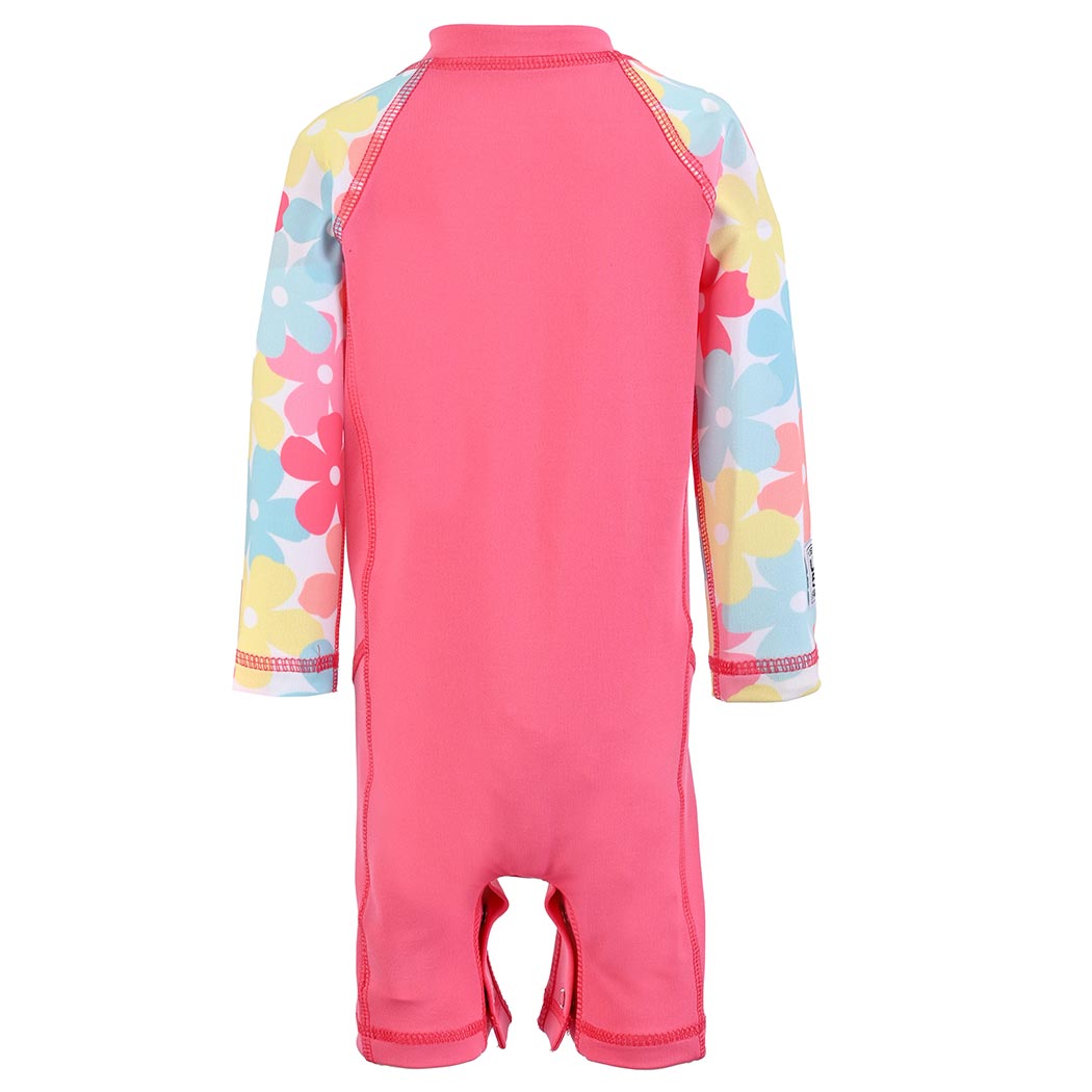 En los días de Vacaciones que tu familia y tú solo se ocupen de divertirse en grande mientras disfrutan del sol, por eso te presentamos esta prenda para tu hija, este body, de cierre frontal en color melón, con mangas y frente en tela sublimada multicolor con motivo campestre, cuello y aletilla en color melón, esta prenda super practica, mantendrá protegida la piel de tu hija de los rayos solares pues cuenta con nuestra certificación UPF50+, confeccionado de tela fresca, suave y ligera, que no guarda olores y es de secado ultra rápido.