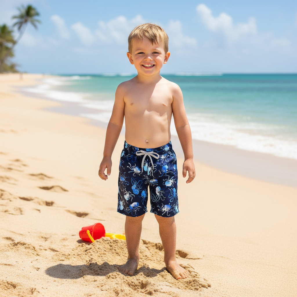 Haz que cada aventura acuática sea más divertida con esta bermuda estampada para niño, con un diseño único de pulpos. Con pretina elástica y jareta ajustable con puntas metálicas, garantiza un ajuste perfecto y cómodo. Su secado ultra rápido y calzón interno de tela calada ofrecen mayor comodidad y frescura. Incluye una bolsa oculta interna y una práctica bolsa de parche en el costado con velcro y ojillo para drenar el agua. Los vivos en contraste en los costados y el color marino le dan un toque moderno y funcional, ideal para disfrutar del agua sin preocupaciones.