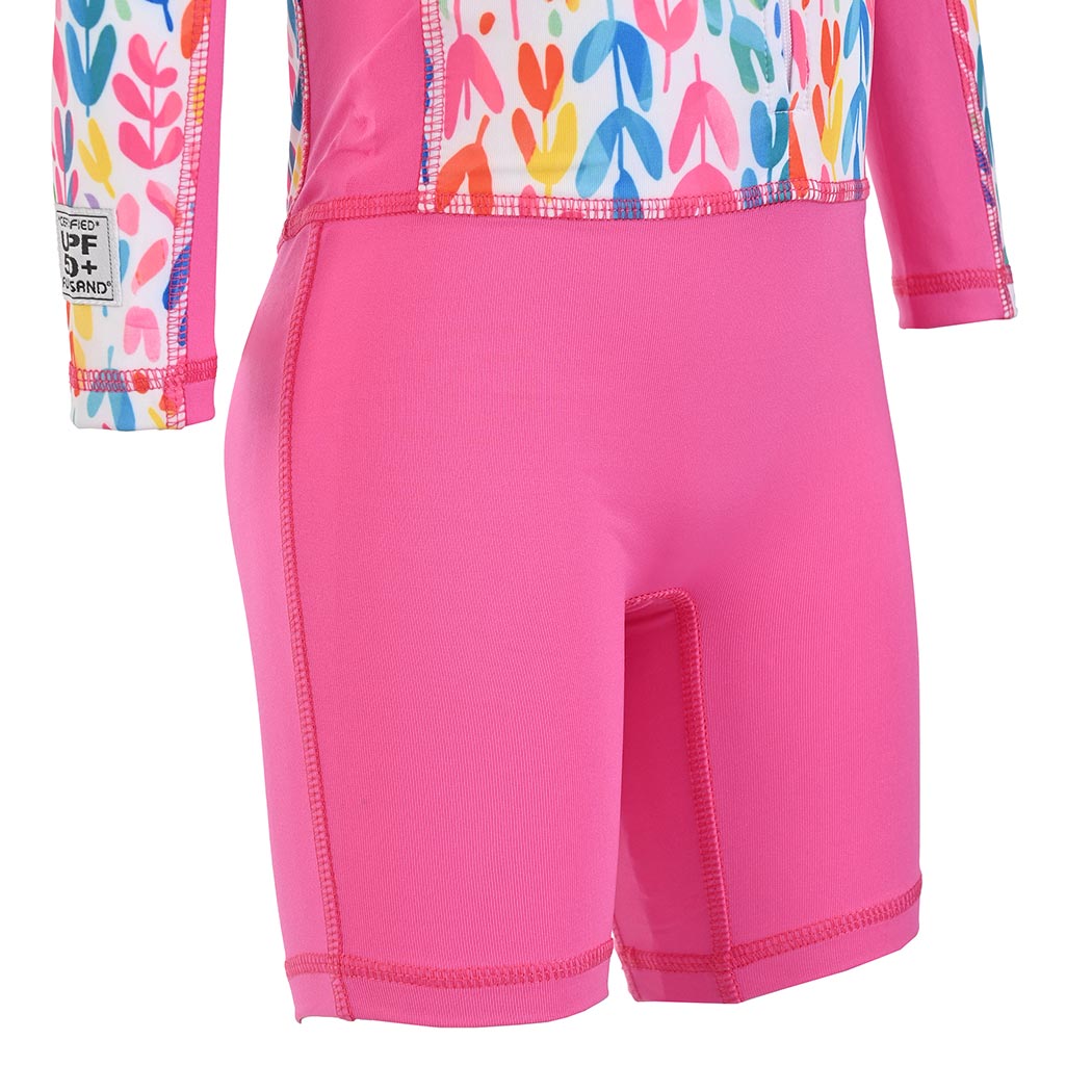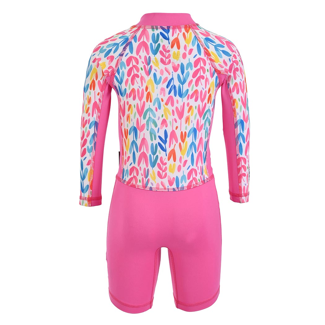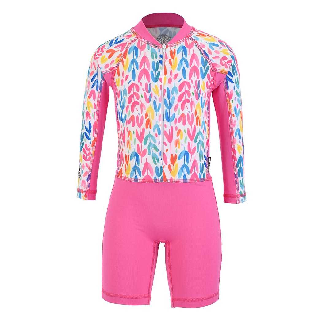 Traje de baño completo para bebé niña, ideal para disfrutar del sol y la playa con total estilo y seguridad. Con un adorable diseño de manga larga y protección solar certificada UPF50+, este body asegura máxima cobertura contra los rayos UV mientras tu pequeña se divierte al aire libre. Su estampado exclusivo *Colofulen* en frente, espalda y mangas, combinado con detalles en tela lisa en los costados, cuello y short simulado, crea un look moderno y encantador. El cierre frontal en color blanco permite vestir y desvestir con facilidad, y la etiqueta bordada con el logo en el costado izquierdo garantiza un toque de distinción. Perfecto para proteger y lucir espectacular en la playa o la piscina. Disponible en tallas 3 y 4.