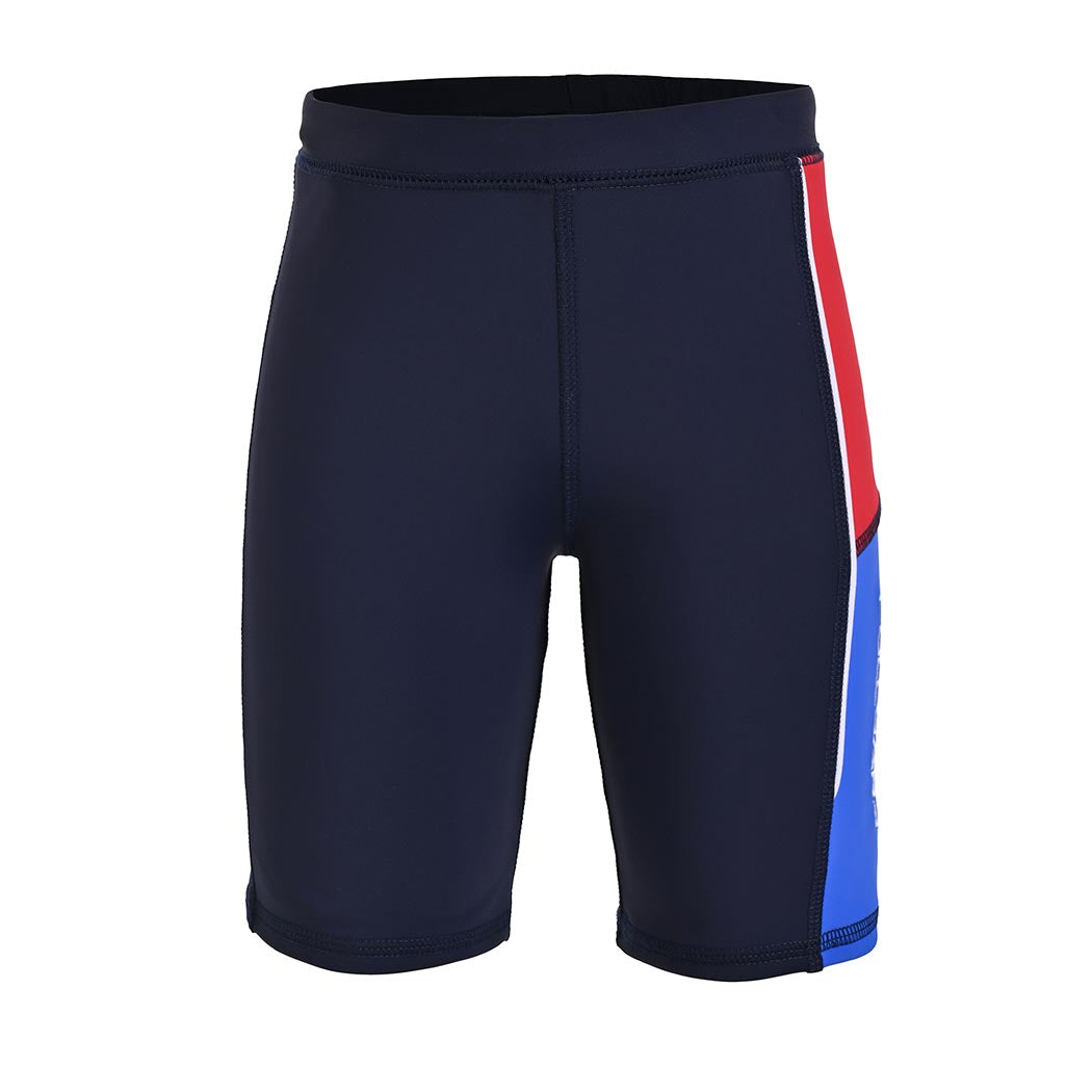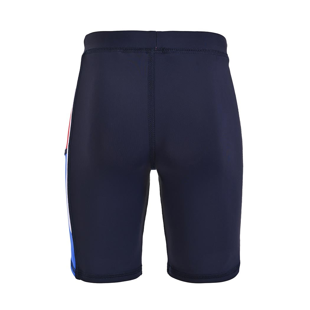 Biker para niño, en color marino, con detalle en pierna izquierda de línea en color blanco y franjas en corte diagonal color rojo y azul rey, con nuestra fiorma bordada sobre sección de color, con jaretas en cintura para un mejor ajuste y forro frontal, para mejor soporte en todas las actividades que realice tu pequeño en sus vacaciones, en la playa o la alberca, por lo que es recomendable para actividades acuáticas, confeccionado de tela fresca y ligera, de secado ultra rápido que no guarda olores.