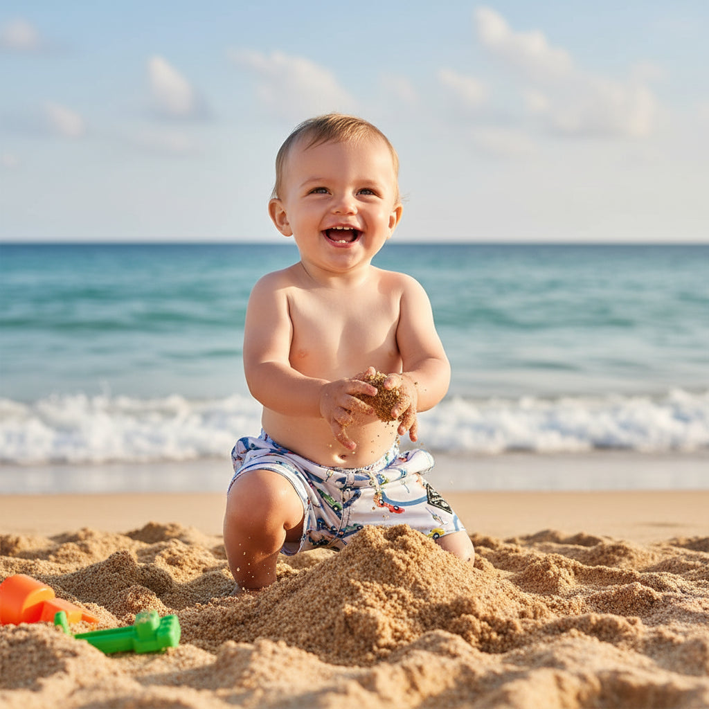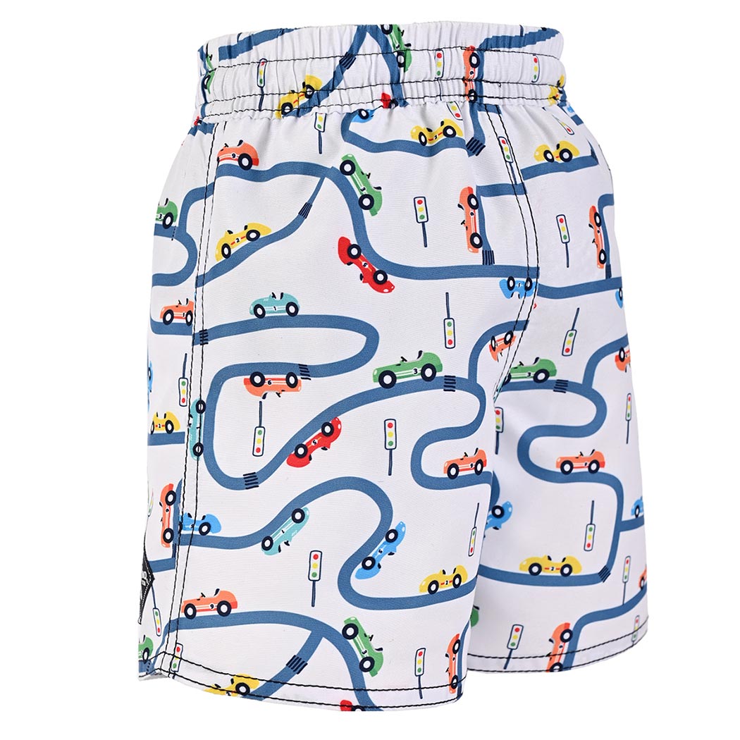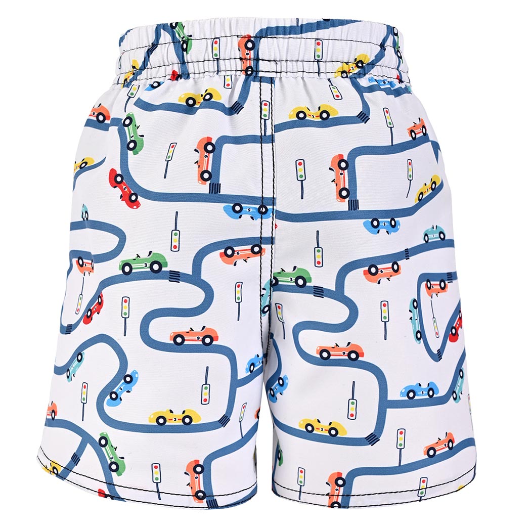 Diseñado para acompañar cada chapoteo y juego bajo el sol, este short para bebé combina protección, confort y estilo en una sola prenda. Con resorte en la cintura y jareta ajustable con punteras, ofrece un ajuste cómodo y seguro que se adapta al movimiento natural del pequeño. Confeccionado en tela sublimada multicolor con un divertido motivo de coches, su tejido es fresco, suave y ligero, ideal para mantener a tu bebé cómodo durante todo el día. El interior con calzón de tela calada proporciona mayor soporte y transpirabilidad. Su factor de protección solar UPF 50+ bloquea más del 98% de los rayos UV, cuidando su piel mientras disfruta del agua y el sol. Además, el material es de secado rápido y no guarda olores, perfecto para actividades acuáticas y días de playa o piscina.